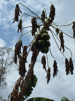 A papaya tree killed by aerial fumigations in Meta. (Credit: Garry Leech)