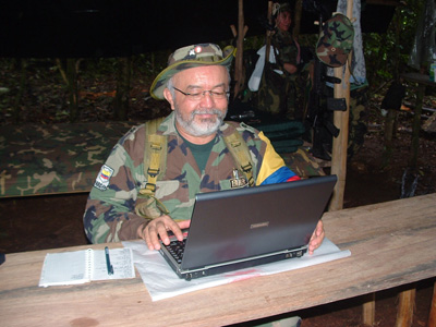 FARC Commander Raul Reyes and his infamous laptop eight months before he was killed. (Credit: Garry Leech)